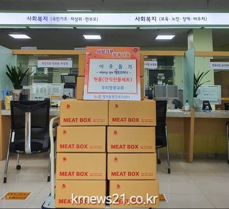 ▲ [사진제공 = 김포시]장기동 우리영광교회(목사 오흥일)는 지난 4월 29일 어린이 날을 맞아 관내 저소득층 아동에게 전달해 달라며 간식 선물세트 20개를 기탁했다.