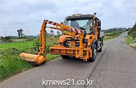 제주시 건설과에서는 자체 보유한 다목적 차량 4대를 활용하여 4월 26일부터 5월 14일까지 구좌읍, 한림읍, 한경면 주요 도로(시도, 농어촌도로 등) 28개 노선(구좌읍 11, 한림읍 5, 한경면 12, L=151.4㎞)에 대해 도로변 풀베기 작업을 추진하고 있다.