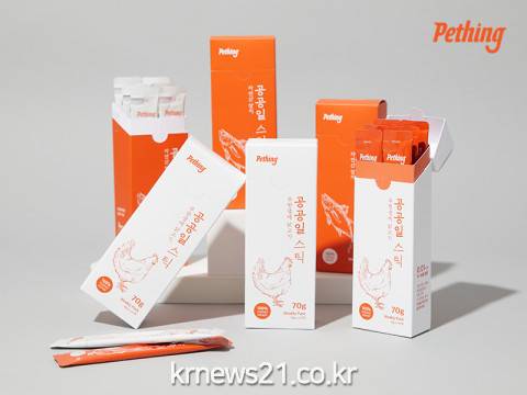 ▲ [이미지제공 = 펫띵]더식스데이의 반려동물 토탈 라이프스타일 브랜드 펫띵(Pething)이 나트륨 농도 0.01% 고양이 츄르 ‘공공일스틱’을 출시했다고 밝혔다.