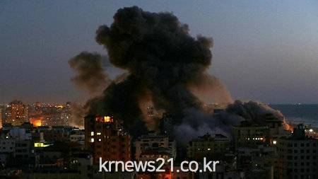 ▲ [SHUUD.mn=뉴스21 통신. 무단 전재-재배포 금지.]이스라엘과 팔레스타인 무장정파 하마스 간 대규모 유혈 충돌이 나흘째 이어지는 가운데 이스라엘군이 가자지구에 103회에 걸친 공습을 감행해 팔레스타인 사람들이 100명 이상 사망한 것으로 전해졌다.