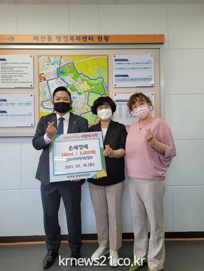 이회숙 마산동장은 “코로나19가 장기화됨에 따라 사회취약계층은 더욱 어려워지고 있는 요즘 개인의 안전을 지킬 수 있는 방역용품으로 지역 내 보건·위생을 위해 의미있게 사용하겠다”고 밝혔다.