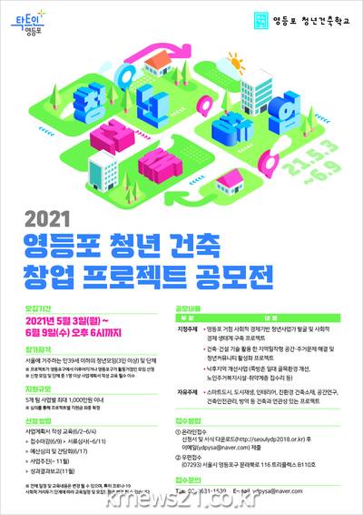 ▲ [사진=홍보포스터]영등포구(구청장 채현일)가 ‘2021년 영등포 청년 건축 창업프로젝트’에 참여할 역량 있는 청년들을 모집한다.
