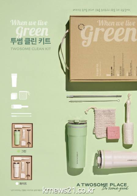 이번 키트에 포함된 클린 텀블러는 500ml 용량에 스테인리스 스틸 소재로 제작됐다. 자연의 색을 닮은 ‘화이트’와 ‘그린’ 2가지 버전으로 출시된다. 반영구적으로 사용할 수 있는 스테인리스 스틸 빨대와 위생적인 빨대 사용을 도와줄 세척솔도 함께 구성됐다.