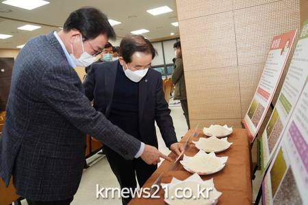 이 날 평가회에는 진천 지역에 대한 재배적응성이 좋을 것으로 분석된 △알찬미 △진수미 △청품 △미호 △삼광1호 △새일품 등 국내육성 신품종 6종이 제시됐으며 블라인드 테스트 결과 알찬미가 최다득표를 얻었다.