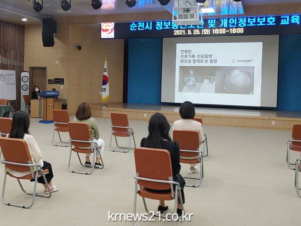순천시(시장 허석)는 코로나19 시대에 맞는 개인정보의 안전한 관리 및 유출차단을 위해 지난 25일 전직원 대상으로 정보통신보안 및 개인정보보호 역량강화 교육을 실시했다.