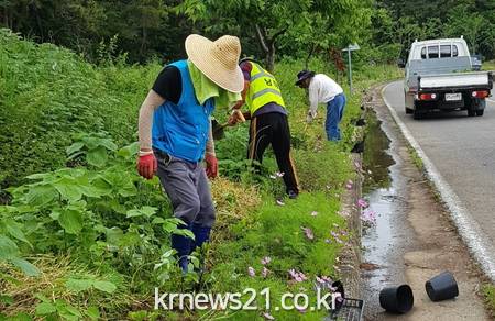 설천면은 농업기술센터에서 치자나무 묘목 500여 주를 지원받아 진목~비란 해안 도로변에 식재했다.