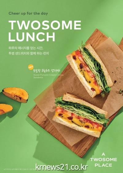 이번에 출시한 단호박 크림치즈 샌드위치는 달콤한 단호박을 비롯해 로메인, 양상추, 토마토 등 다양하고 신선한 채소, 부드러운 크림치즈를 곁들인 든든한 구성으로 건강한 한끼 식사로 즐기기에 충분하다. 남녀노소 누구나 좋아하는 단호박 샐러드를 활용했다.