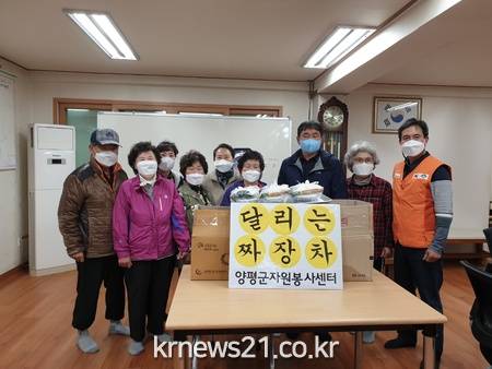 ▲ [사진제공 = 양평군]양평군종합자원봉사센터는 지난 27일, 찾아가는 생활 맞춤형 복지서비스인 ‘달려가 고치고 나누는 달고나사업’의 일환으로 ‘행복나눔사업 달리는 짜장차’ 음식 나눔 봉사를 진행하였다.