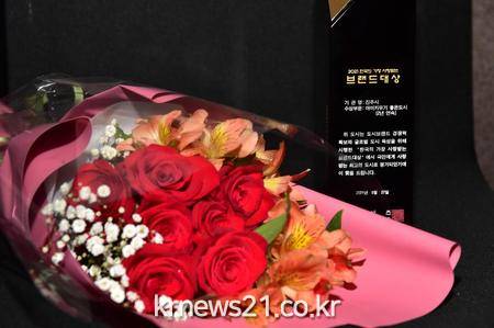 ▲ [사진제공 = 진주시]진주시가 27일 오전 서울 더플라자호텔 그랜드볼룸에서 열린 「2021년 한국의 가장 사랑받는 브랜드 대상」에서 2년 연속 ‘아이 키우기 좋은 도시’부문 대상을 수상했다.