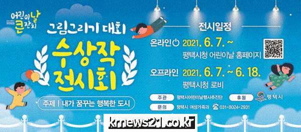오는 7일부터는 그림그리기 대회 수상작품의 온/오프라인 전시회도 계획되어 평택시청 본관1층 로비 및 평택시 어린이날 대표홈페이지에서 어린이가 꿈꾸는 행복한 도시를 만나 볼 수 있다. 자세한 사항은 평택시청 홈페이지에서 확인할 수 있다.