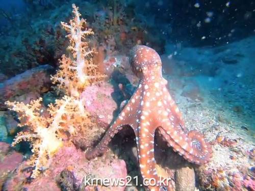 ▲ [사진제공 = 국립해양생물자원관]국립해양생물자원관(관장 황선도)은 지중해 해역을 비롯한 대서양, 인도-태평양 등 열대 해역에서만 주로 발견되는 ‘붉은흰반점문어(가칭)’를 부산 앞바다에서 발견했다고 밝혔다.