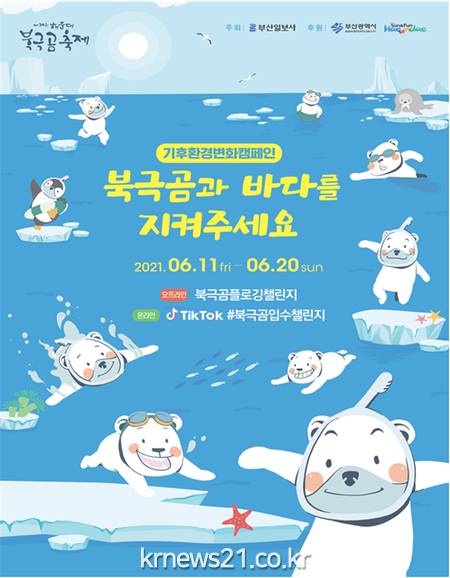 ▲ [사진=홍보포스터]부산시(시장 박형준)는 부산일보가 주최하고 부산광역시가 후원하는「제34회 해운대 북극곰축제(부제 “북극곰과 바다를 지켜주세요”)」를 6월 11일부터 6월 20일까지 10일간 해운대해수욕장 이벤트 광장과 온라인(틱톡)으로 개최한다고 밝혔다.