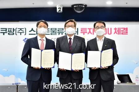 이날 MOU 체결식에는 박형준 부산시장, 박대준 쿠팡 대표이사, 하승철 부산·진해경제자유구역청장 등이 참석했다.