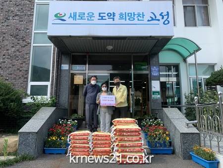 ▲ [사진제공 = 고성군]영현면(면장 최경락) 연화리 출신 이선경 씨의 자녀들이 6월 28일 영현면사무소를 찾아 연화리의 3개 경로당과 마을 내 저소득층 이웃을 위하여 사용해 달라며 백미 420kg을 기탁했다.