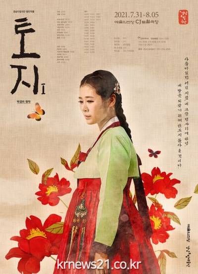 ▲ [사진=홍보포스터]한국 현대문학이 낳은 기념비적인 대하소설 <토지>가 국내 최초, 연극으로 재탄생 되어 2021년 7월 31일(토)부터 8월5일(목)까지 5일간 예술의전당 CJ 토월극장 무대에 오른다. 예술의전당은 지방의 균형 발전을 위해 지역의 문화예술기관들과 협업하는 ‘2021년 지역 우수콘텐츠 교류사업’을 시작하고, 그 첫 번째로 경남도립극단의 작품 연극 <토지Ⅰ>을 선택했다.