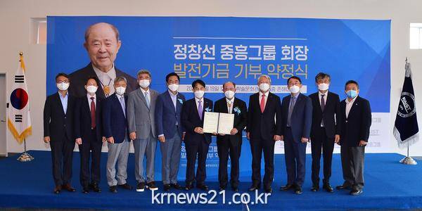 정창선 중흥그룹 회장은 “기술패권주의 시대에 세계와 경쟁하며 앞서 나가려면 과학기술 인재를 키워야 한다. 젊은 과학자들이 무한한 연구의 기회를 얻을 수 있도록 폭넓게 지원하면, 그들이 성장해 수만 명을 먹여 살리는 인재가 될 것이라고 확신한다”라고 강조하면서, “약 146만평 규모로 추진 중인 초대형 첨단복합미래도시인 평택의 브레인시티 사업과 산・학과 지자체가 성공적인 협력 모델을 구축해 K-반도체의 도약을 추진해가는 길에 이번 기부가 보탬이 되길 바란다”라고 전했다.