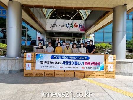 ▲ [사진제공 = 영양군]영양군지역사회보장협의체(공동위원장 오도창, 김길동)는 23일 경북공동모금회로부터 시원한 여름나기 물품(1세대 10만원 상당) 190개를 배분받아 읍면지역사회보장협의체에 전달했다.