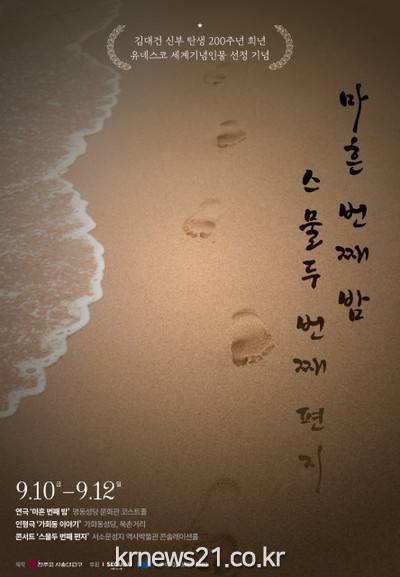 ‘마흔 번째 밤, 스물두 번째 편지’는 천주교 순례길을 잇는 거리극으로 연극, 콘서트가 합쳐진 형태다. 먼저 가회동성당 마당 인형극, 북촌 거리퍼레이드, 명동성당에서 펼쳐지는 연극 ‘마흔 번째 밤’은 김대건 신부가 사망한 뒤 40일째 신자들이 새남터 모래사장을 찾아와 김 신부의 유해를 찾아가는 과정을 극화해 연극으로 구성한 작품이다.