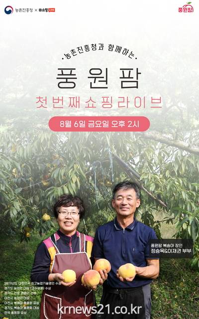 라이브커머스를 진행하는 풍원팜은 이천시 장호원읍에 위치하며 3대째 40년간 복숭아 과수원을 운영하고 있는 농가로 2019년에 대한민국최고농업기술명인으로 선정될 정도로 우수한 복숭아를 직접 생산하고 있으며, 농촌융복합산업인증농가로 복숭아를 가공한 복숭아잼, 복숭아말랭이 등 다양한 복숭아가공품을 판매하고 있다.