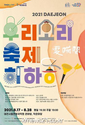 ▲ [사진=홍보포스터]대전시립연정국악원에서는 오는 8월 17일(화) 연희컴퍼니 유희와 스카밴드 킹스턴 루디스카의 <유희스카>의 개막공연을 시작으로 8월 28일(토) 그림(The林)의 <환상노정기> 폐막공연까지 총 10회의 공연을 진행하는 <대전, 우리 소리 축제 하하하(夏嗬閜)>를 개최한다고 밝혔다.
