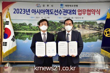 진주시는 12일 오후 3시 진주시청 기업인의 방에서 2023년 아시아역도선수권대회의 성공적인 유치 및 개최를 골자로 하는 진주시와 대한역도연맹의 업무협약식을 가졌다고 밝혔다.