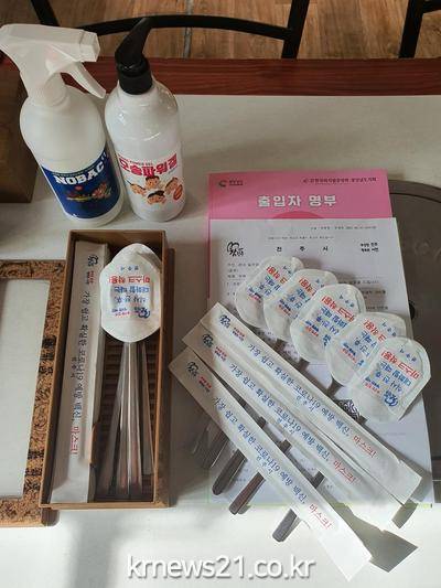 ▲ [사진제공 = 진주시]진주시는 코로나19 4차 대유행의 위기에 대응하여 수저를 사용하는 관내 음식점의 위생 관리를 위해 수저 위생 포장지를 제작·배부하는 등 감염병 확산 차단에 총력을 기울이고 있다.