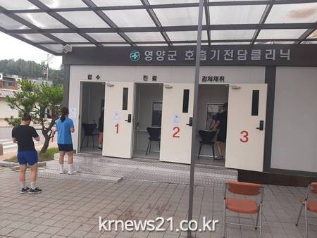 ▲ [사진제공 = 영양군]영양군(군수 오도창)은 8월 첫 주부터 영양군 선별진료소에서 관내 기숙사생과 교직원과 고추유통공사 직원 및 건조와 수송담당 근로자 그리고 유도 전지훈련생을 대상으로 코로나19 진단검사를 실시하고 있다.