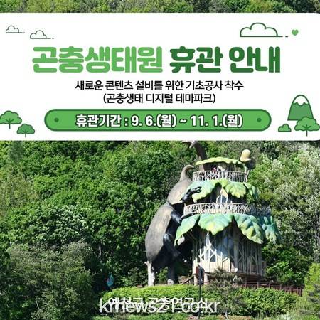 ▲ [사진=홍보포스터]예천군(군수 김학동) 곤충생태원이 오는 9월 6일부터 11월 1일까지 곤충생태 디지털 테마파크 사업 기초 공사를 위해 임시 휴관한다.