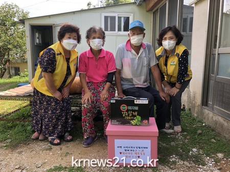 ▲ [사진제공 = 남원시]서면 지역사회보장협의체(공동위원장 문석종·곽길심)는 지난 27일 코로나19 방역 수칙을 준수하며 통합사례관리 대상 5가구에 서면 특수시책인 ‘찾아가는 행복 돌봄 장바구니’를 전달했다.