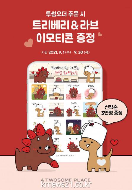 이벤트 기간은 9월 1일부터 30일까지로, 투썸하트 앱의 사전 주문 기능 투썸오더를 이용한 고객 3만 명에게 카카오톡에서 사용할 수 있는 브랜드 이모티콘을 제공한다.