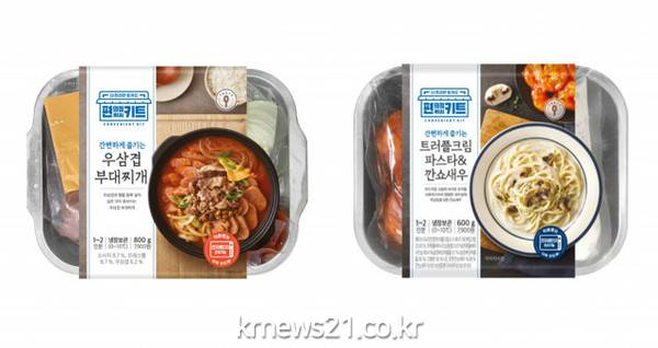 편의점 밀키트 2종은 준비부터 완성까지 최대 7분 정도 걸리는 상품으로, 재료 손질 등 사전 준비와 별도 조리 용기가 불필요하고 전자레인지와 직화 조리가 모두 가능한 것이 장점이다. 또한 100% 재활용이 가능한 친환경 순수 알루미늄(I2R) 재질의 용기가 사용돼 환경 보호에도 이바지할 수 있다. 우삼겹 부대찌개는 사골 육수를 넣어 전문점의 맛을 살린 것이 특징이다. 또한 트러플크림&깐쇼새우 파스타도 반숙면을 사용해 별도의 면 조리 없이도 쫄깃한 면발을 구현해 냈다. 가격은 모두 7900원이다.