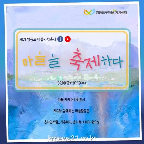 ‘2021 영등포 마을자치축제’와 관련된 자세한 내용은 영등포구 마을자치센터 홈페이지(http://www.youngmaeul.org)에서 확인하거나 카카오 채널에서 ’영등포구 마을자치센터’를 친구 추가 하면 받아볼 수 있다.