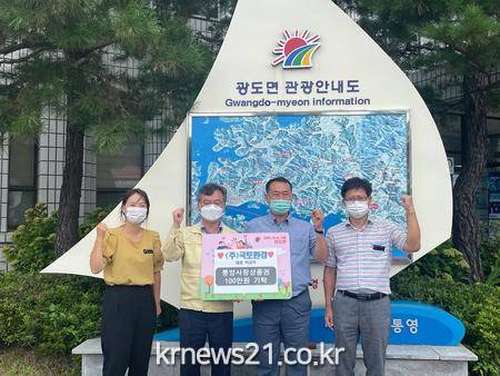 ▲ [사진제공 = 통영시]광도면에 소재하고 있는 국토환경(주) 박금석 대표는 9월 7일(화) 추석 명절을 앞두고 어려운 이웃을 돕는 데 사용해주기를 바라는 마음 담아 통영사랑상품권 100만원을 기탁했다.