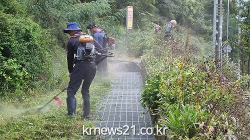 ▲ [사진제공 = 이천시]이천시 창전동 통장단협의회(회장 박상욱)는 지난 7일부터 사흘간 회원 16명이 참여한 가운데 시민들의 통행이 잦은 망현산 주변 제초작업 및 환경정비를 실시했다고 밝혔다.