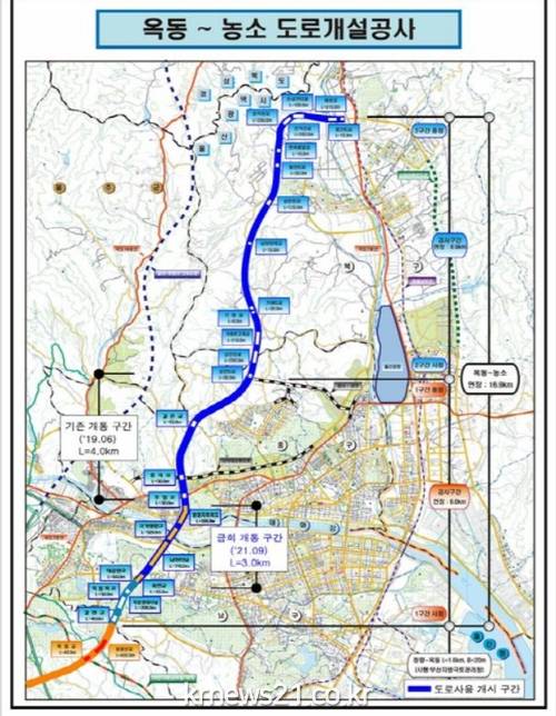 ‘옥동 농소1 도로개설공사’는 총사업비 2967억 원이 투입되어 남구 옥동 갈티교차로에서 중구 성안동 성안나들목(IC)까지 연장 8㎞, 폭 20m(왕복 4차선) 규모로 지난 2013년 1월 착공됐다.