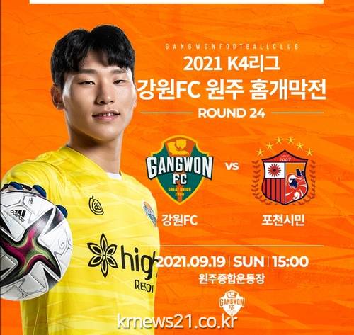 ▲ [사진=홍보포스터]2021시즌 K4리그 강원FC B팀 원주 홈 개막전이 포천시민축구단을 상대로 오는 19일 오후 3시 원주종합운동장에서 열린다.