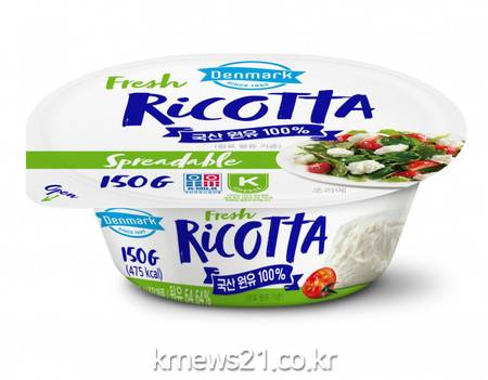 덴마크 리코타치즈는 국산 원유를 사용한 유제품에 부여되는 한국낙농육우협회의 ‘K-MILK’ 인증을 획득한 자연치즈 제품으로, 신선한 원유의 고소한 풍미가 그대로 담겨있다. 치즈 제조 시 우유로부터 나오는 유청을 한 번 더 끓여내는 리코타치즈 정통 생산방식을 재현해 부드러운 식감과 담백한 맛은 물론 단백질 등 다양한 영양소를 함유하고 있다.