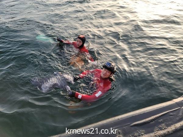 해경은 신고접수 후 구조대를 출동 시켜 현장 도착 후 구조대 2명이 입수하여 방파제 아래