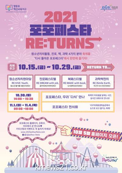 ▲ [사진=홍보포스터]영등포구(구청장 채현일)가 청소년 및 구민들을 위한 축제인 ‘2021 포포페스타’를 오는 15일부터 29일까지 2주간 온라인으로 개최한다고 밝혔다.