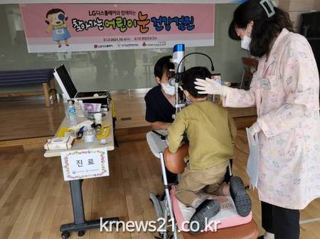 이번 검진은 만3세~6세 어린이 200명을 대상으로 시력검사, 자동굴절검사, 입체시 검사, 안저촬영검사 등 소아안과 전문의 정밀검진으로 상급종합병원에 준하는 안 검진으로 이루어졌다.