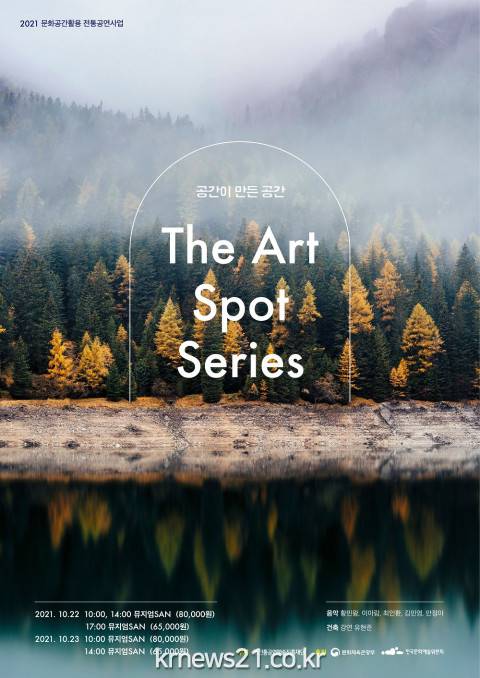 ▲ [사진=홍보포스터]전통공연예술진흥재단(이사장 정성숙)이 주최하는 2021 디 아트 스팟 시리즈 ‘공간이 만든 공간’ 공연이 10월 22일(금)부터 23일(토)까지 총 5회에 걸쳐 뮤지엄 산 웰컴센터 다목적홀과 뮤지엄 산 일대에서 펼쳐진다.
