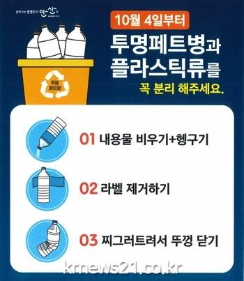 시는 상록구 이동자원순환센터를 시작으로 이동 단독주택지역 거점 7개소를 선정해 무색페트병 전용 수거비닐 설치, 전담 인력 투입을 통해 주 1회 이상 수거 후 모니터링을 실시해 문제점을 개선해 나갈 계획이다.