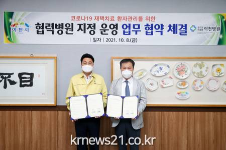 ▲ [사진제공 = 이천시]이천시(시장 엄태준)는 8일 코로나19 재택치료 환자에 대한 안정적 치료와 관리를 위하여 경기도의료원 이천병원과 업무협약을 체결했다.