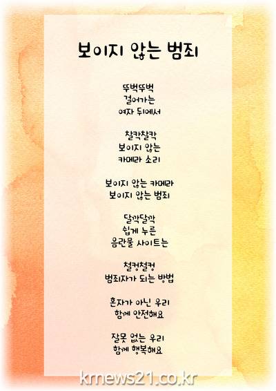 ▲ [이미지제공 = 김포시]김포시청소년재단(이사장 정하영) 학교밖청소년지원센터(이하 꿈드림)는 학교밖청소년 자치위원회 ‘별하’ 기획활동의 일환으로 10월 13일부터 김포골드라인 사우역, 구래역에서 <디지털성범죄 예방 ‘짧은 시’ 공모전 수상작 전시회>를 운영한다.