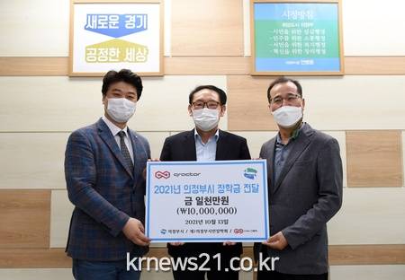 의정부시(시장 안병용)는 ㈜그렉터가 (재)의정부시민장학회에 2021년도 장학금 1천만원을 기탁했다고 밝혔다.