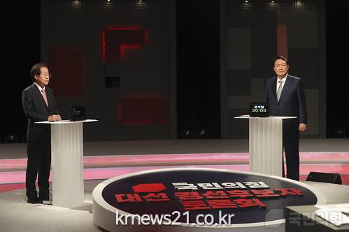 국민의힘 대권주자인 윤석열 전 검찰총장과 홍준표 의원이 15일 밤 TV로 생중계된 1대1 '맞수토론'에서 '도덕성'을 두고 치열한 공방을 벌였다.