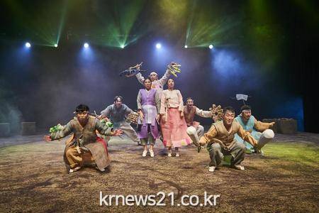 ▲ [사진제공 = 진주시]진주시의 2021 진주 브랜드 작품 창작 공모 작품으로 선정된 (사)극단현장의 ‘수무바다 흰고무래’ 공연이 지난 14일 경남문화예술회관에서 선보였다.