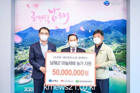 박재욱 대아청과 대표는 “어려운 시기에 남해군 마늘농가에 조금이나마 도움이 될 수 있기를 바란다”며 “대아청과는 호반그룹과 함께 다양한 지원 방안을 모색해 농어촌지역과 기업이 공동 상생할 수 있도록 노력해 나갈 것”이라고 말했다.