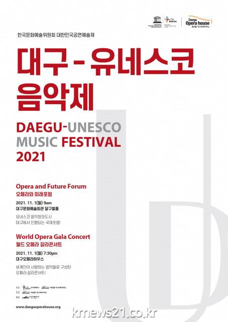 대한민국 서양 음악 도입기 이후 근·현대 서양 음악 발전의 기반을 이룬 대구는 특히 전국 최초의 시립오페라단 창단(1992), 전국 최초 오페라 전용 극장 대구오페라하우스 개관(2003) 및 대구국제오페라축제 개최 등 종합 공연 예술 오페라로 특화된 곳이다. 이런 역사적 의의와 풍부한 음악 인적 자원, 시설 인프라 등을 인정받아 2017년 10월 유네스코 음악창의도시 네트워크에 가입, 세계적인 음악도시의 반열에 오르게 됐다. 대구오페라하우스는 한국문화예술위원회가 지원하는 대한민국공연예술제 사업으로 선정된 이번 ‘대구-유네스코 음악제’를 통해 유네스코 창의 도시 간의 연결, 그리고 ‘위드 코로나’ 시대의 오페라 생존에 대해 이야기한다.