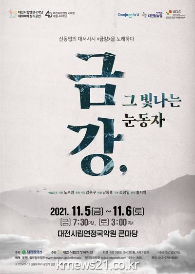 ▲ [사진=홍보포스터]대전시립연정국악단은 오는 11월 5일 금요일 오후 7시 30분, 11월 6일 토요일 오후 3시에 제180회 정기공연‘금강, 그 빛나는 눈동자’공연을 국악원 큰마당 무대에 올린다.